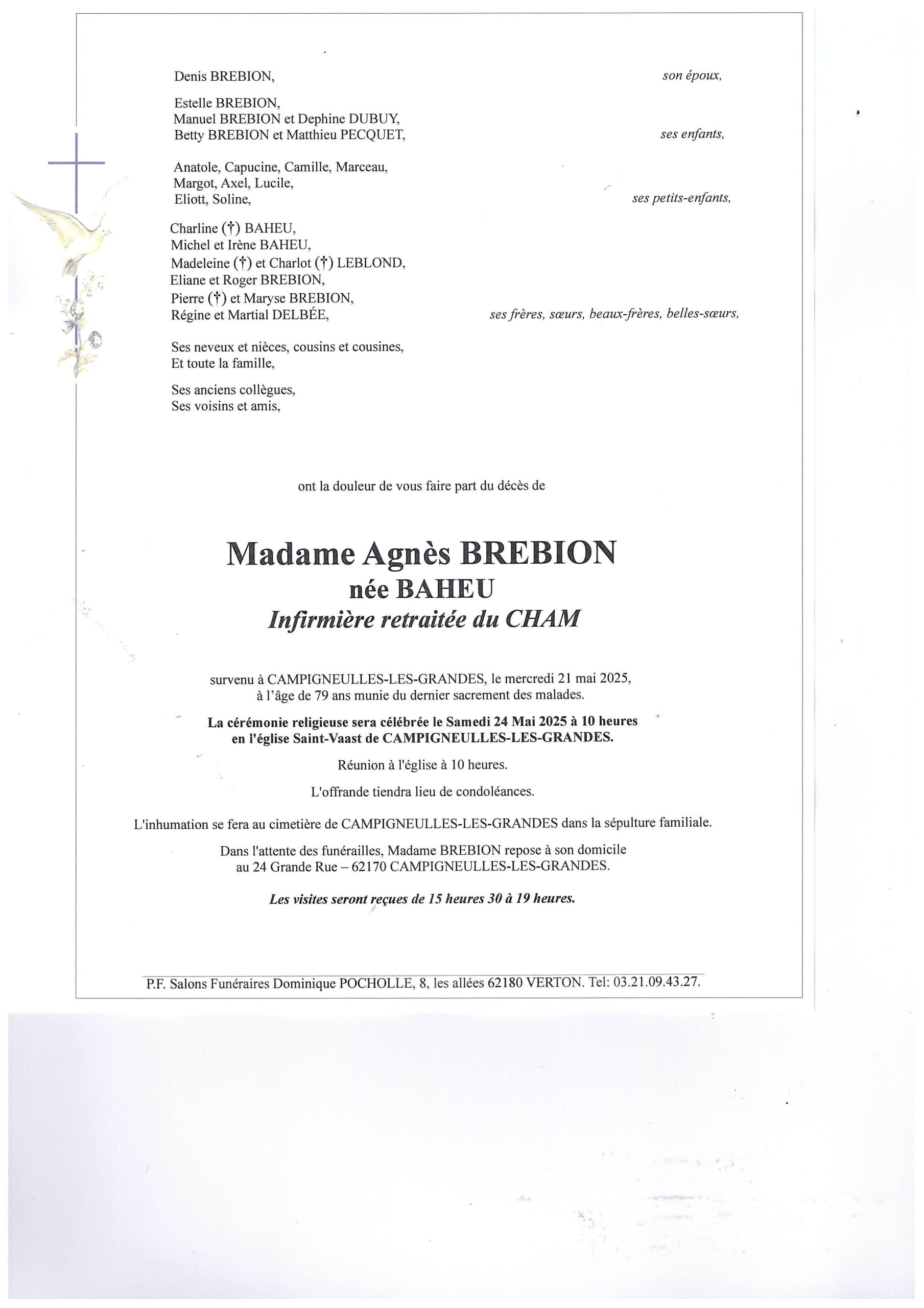 Je présente à Mr Brebion et à ses enfants mes plus sincères condoléances.