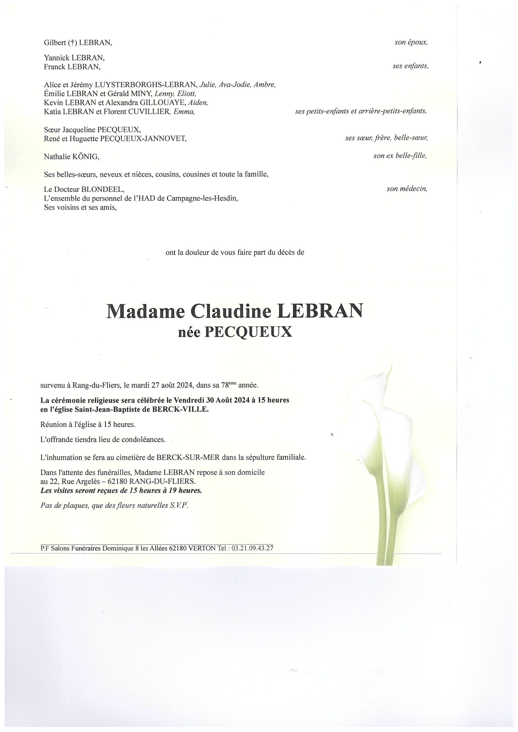 Sincères condoléances j ai travaillé avec Claudine à Cazin CROCQ Marie Paule