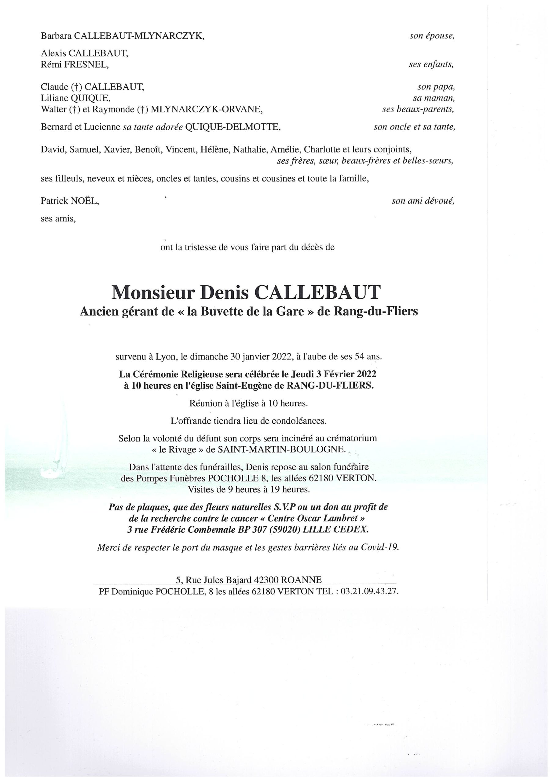 De retour de vacances, nous venons d’apprendre avec grande tristesse le décès de Denis. Sincères condoléances à Barbara et les enfants. Courage à vous dans ce moment difficile. Mr Pillain Vincent & Mme Gallet Euphemie et leur fils.