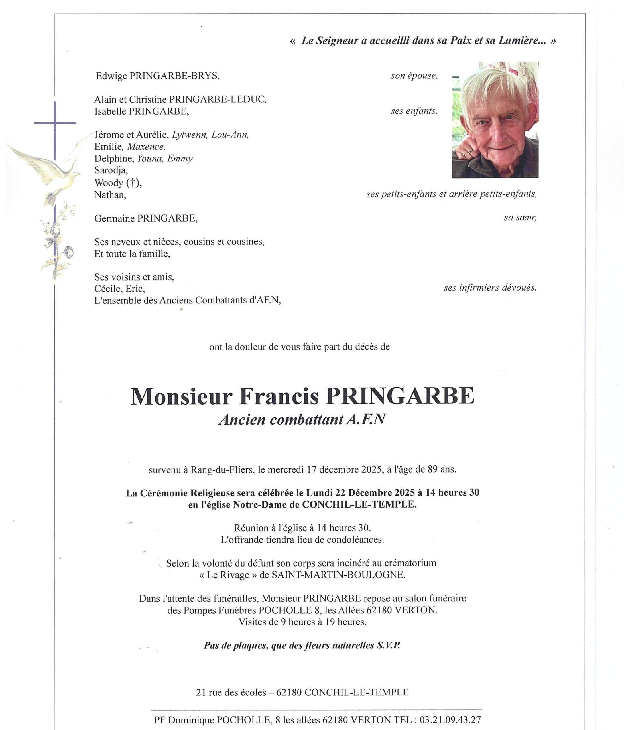 C'est avec émotion que j'ai appris le décès de Monsieur PRINGARBE.