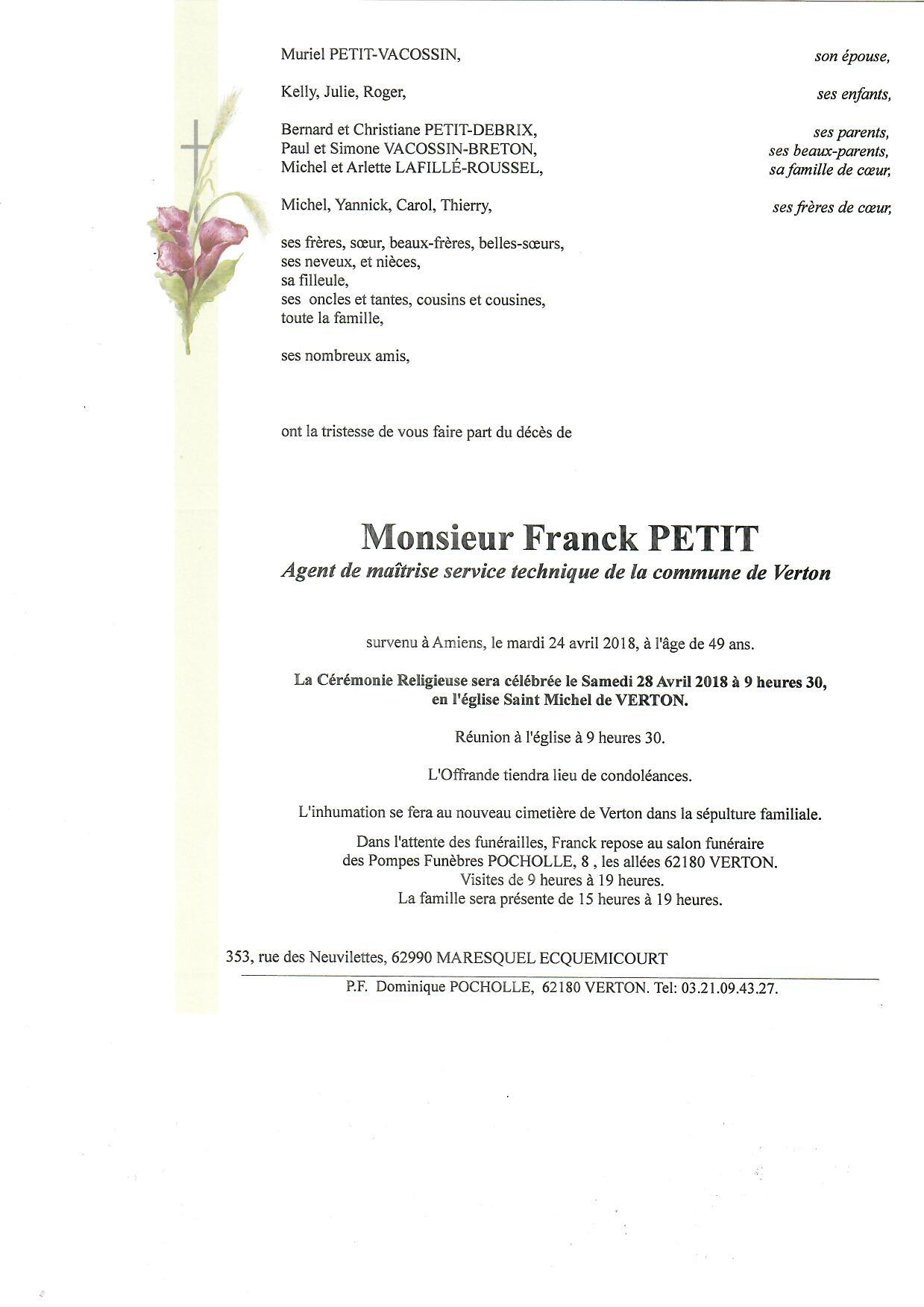 j 'ai appris avec tristesse la disparition de franck ,Sincères condoléances.Bertin hervé 11 rue neuve 62650 Bourthes ( ancien chef d'équipe du cer de verton)