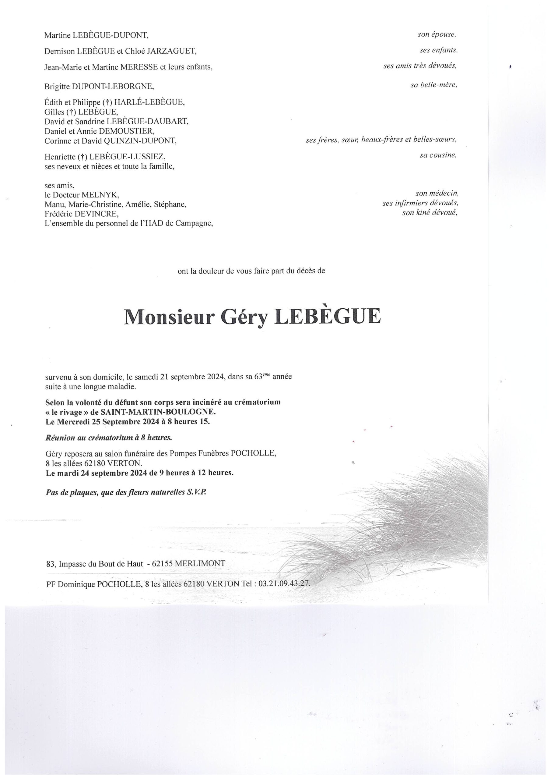 Michèle delahaye valliere vous présente ses très sincères condoléances. Lespinoy 32 rue nationale 62990
