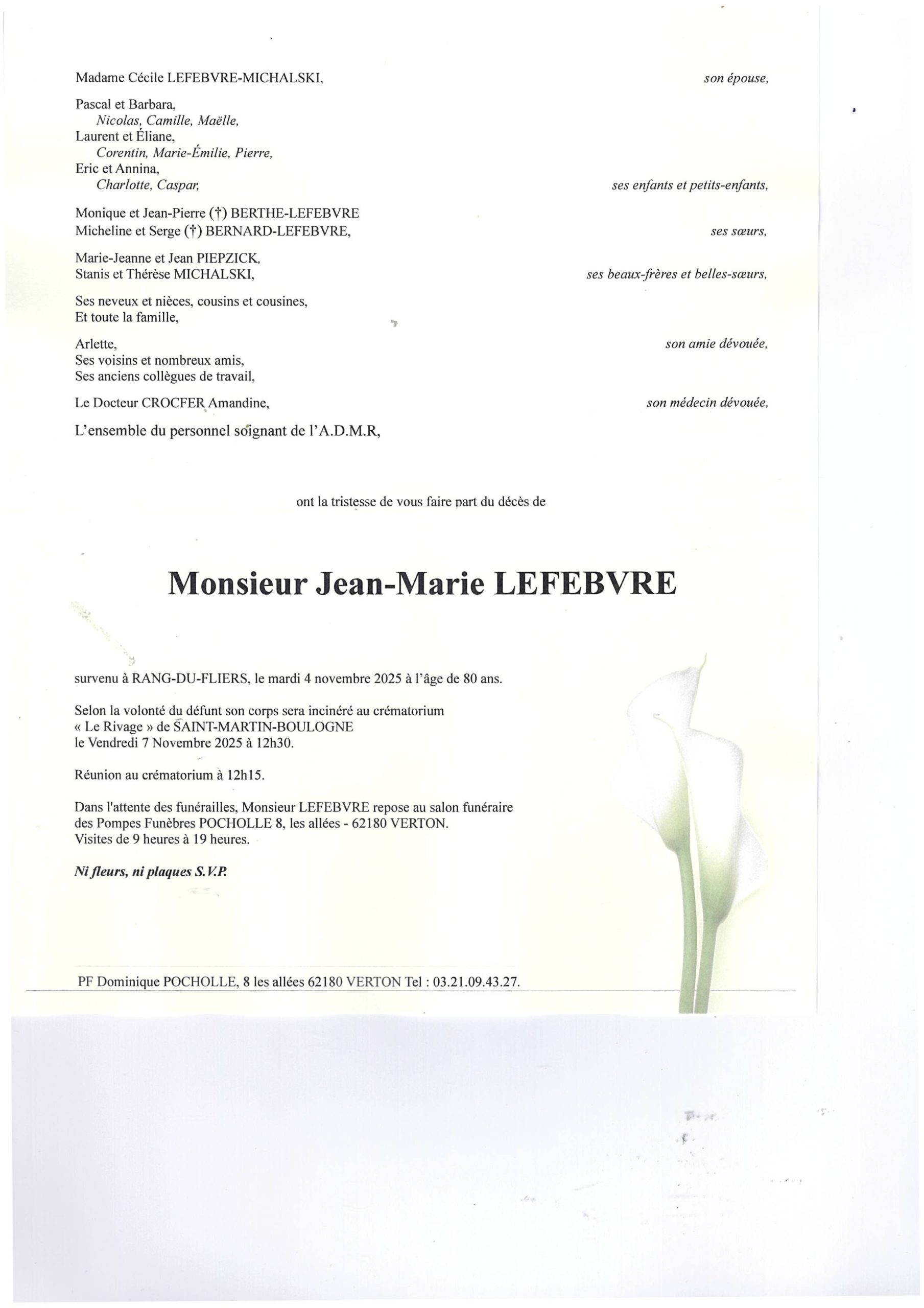A toute la famille de Mr Lefebvre : je m'associe à votre peine et vous présente mes plus sincères condoléances.Viviane Rochet(ADMR)