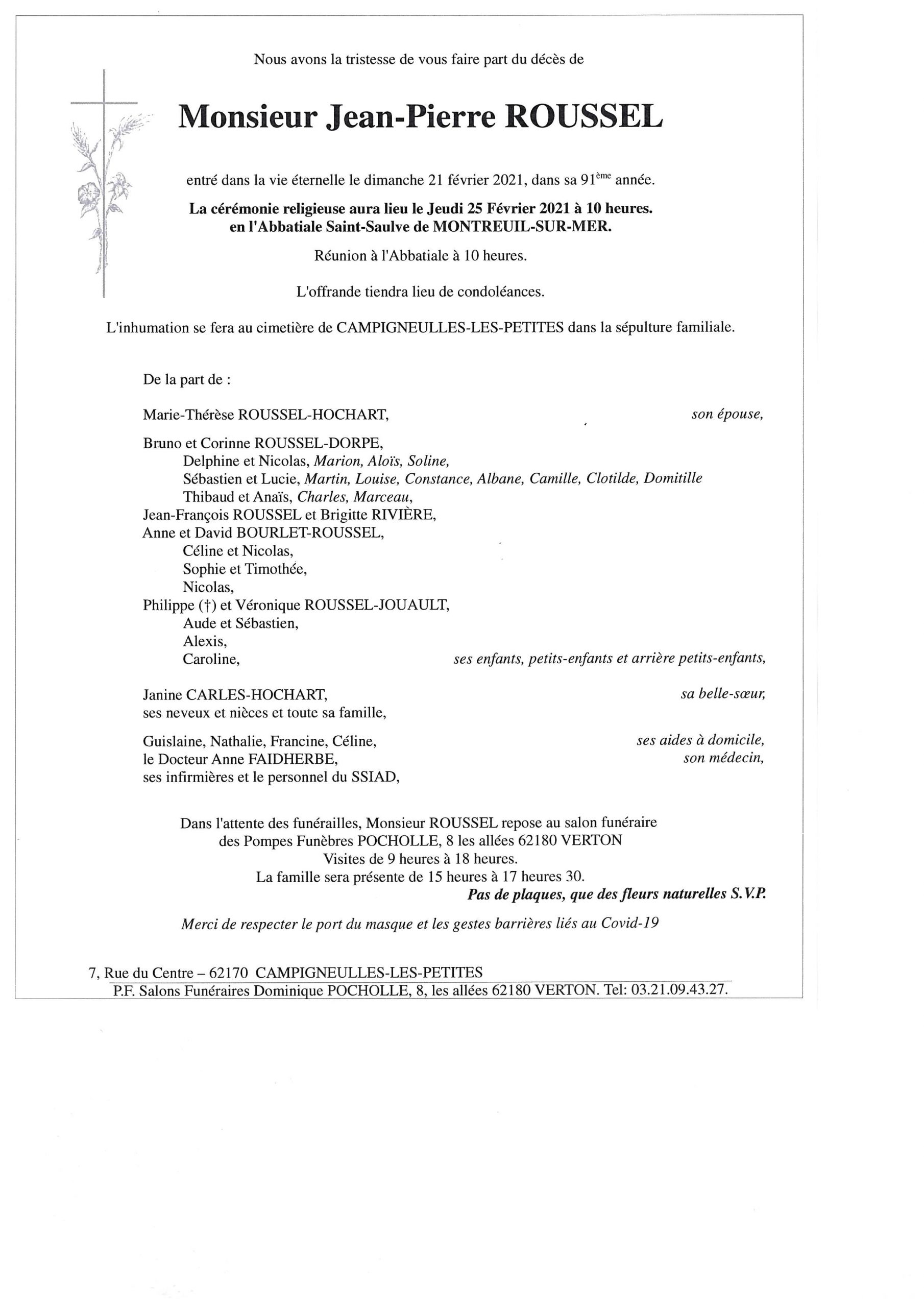 Je présente à Madame Roussel et à toute sa famille mes plus sincères condoléances
