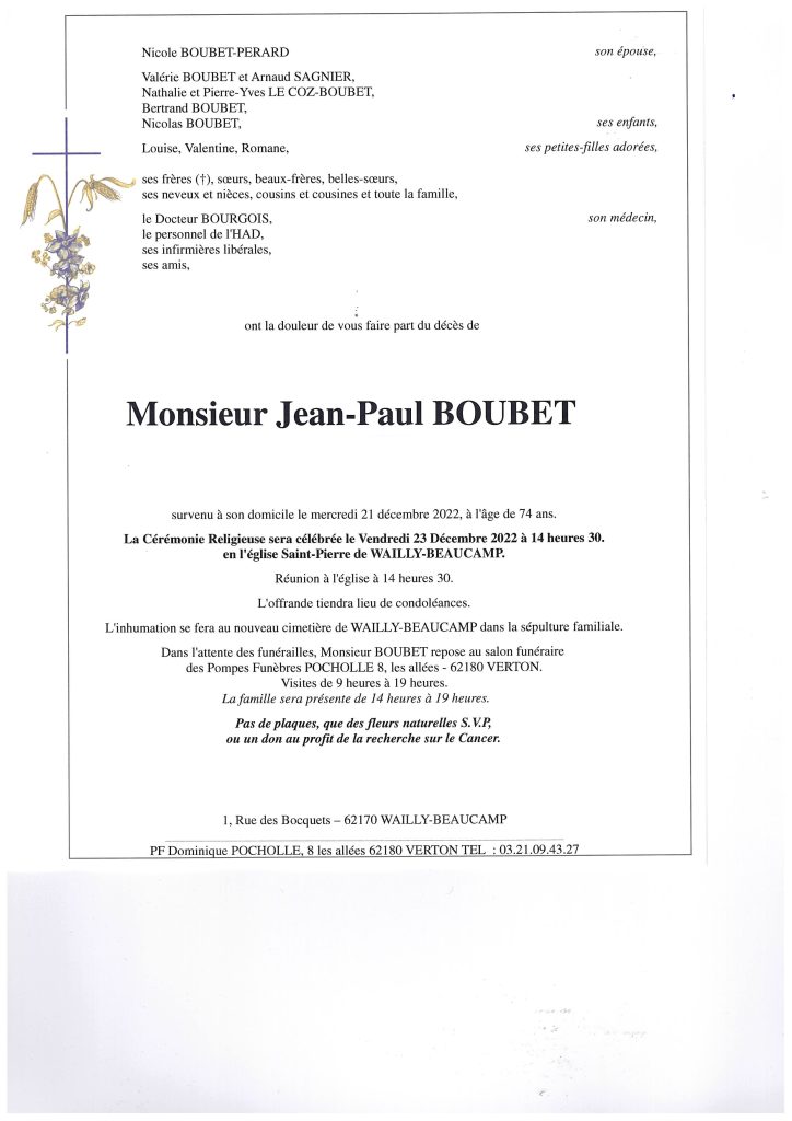 Avis de décès et condoléances