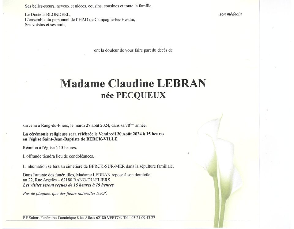 REMERCIEMENT Marie-Christine TISON née MIONNET