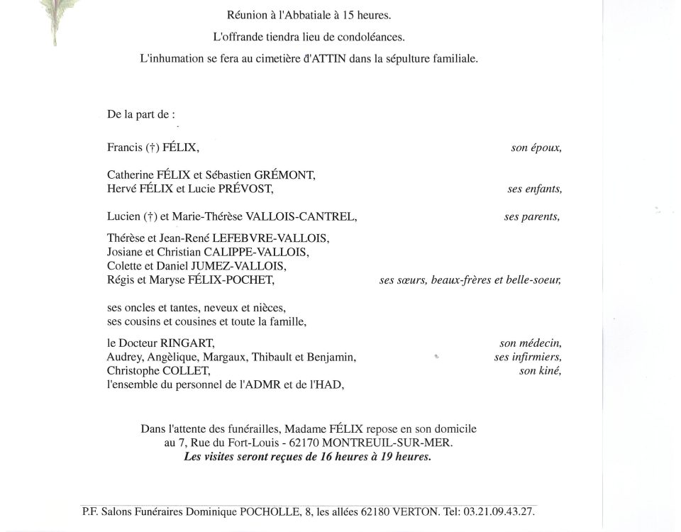 Remerciement Jeanne PAUCHET née DEMOTTE