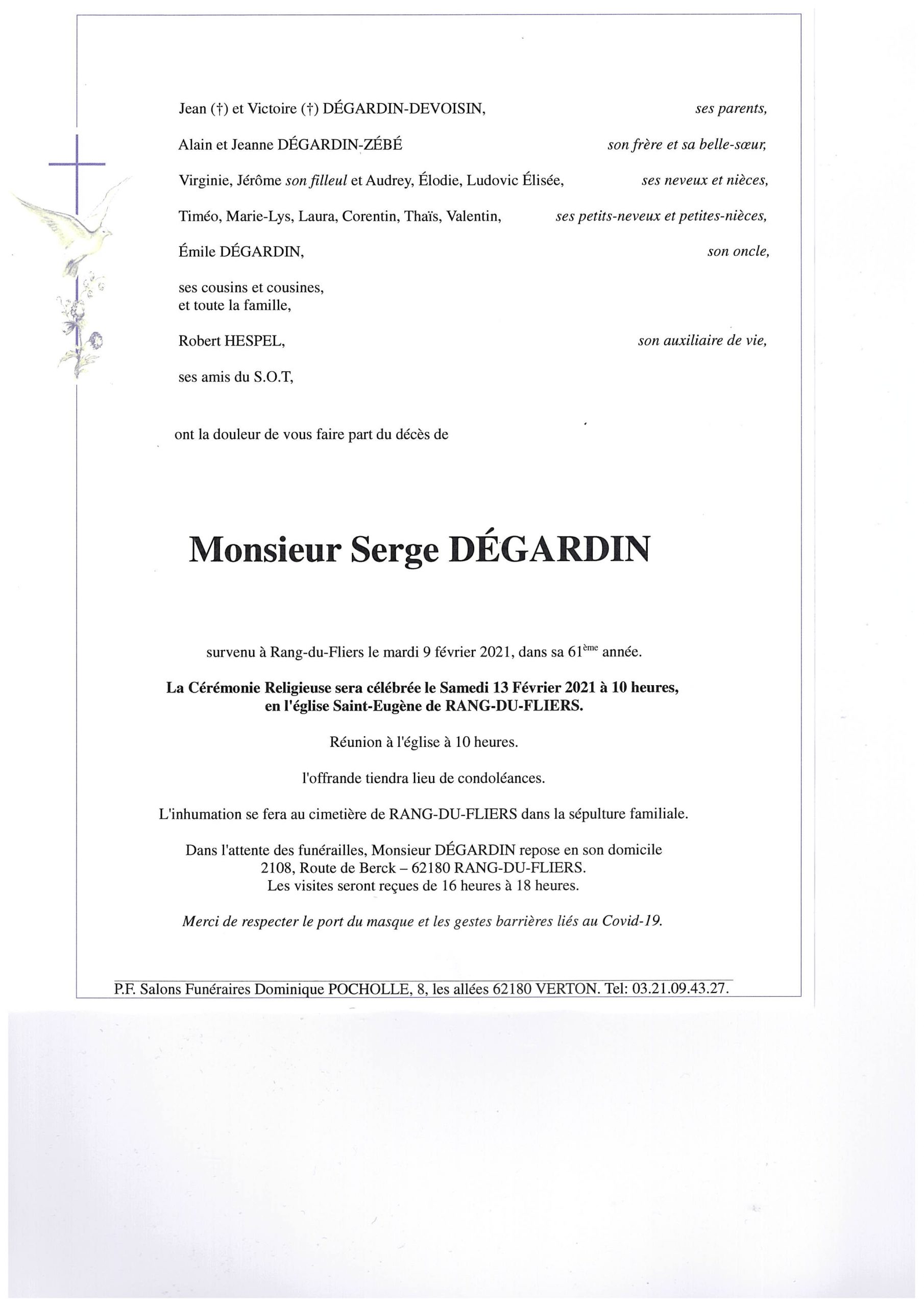 Sincères condoléances à la famille de Serge. Mme Hembert et Jérôme de Berck sur Mer. Serge est allé avec Jérôme à la SOT. Il va rejoindre son papa et sa maman une dame qu'on apprécié beaucoup.